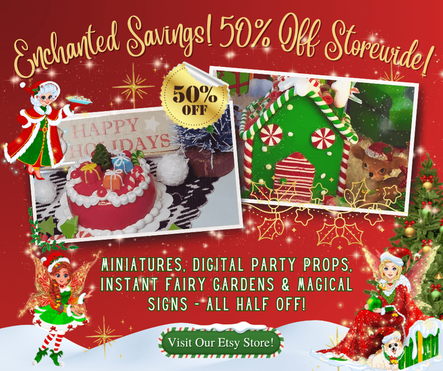 Step into the heart of holiday wonder! Our Christmas Cheer collection is overflowing with fairy-touched joy, festive miniatures, and merry décor now at a dazzling 50% OFF! Perfect for dollhouses, fairy gardens, stocking stuffers, and enchanting Christmas gifting.
