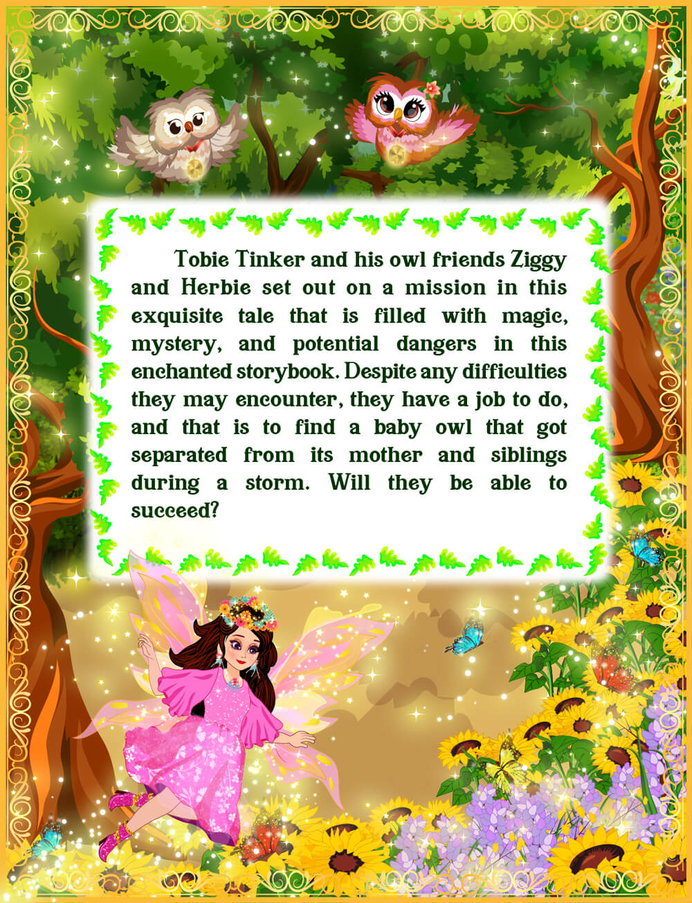 Welcome to the magical world of Tobie Tinker! In our latest adventure, "Tobie Tinker To The Rescue: An Owl Story," we follow the enchanting journey of Tobie and his trusty owl friends, Ziggy and Herbie, as they embark on a mission to find Skye, the baby owl. This whimsical tale is filled with friendship, bravery, and a sprinkle of fairy dust, making it a delightful read for children and families alike.